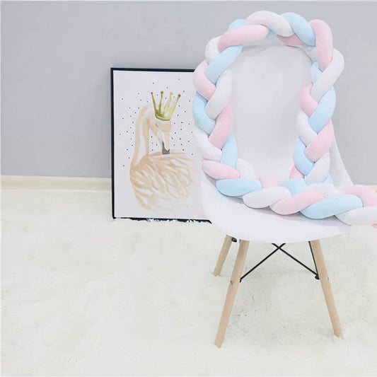 Tour de lit tressé bleu rose blanc