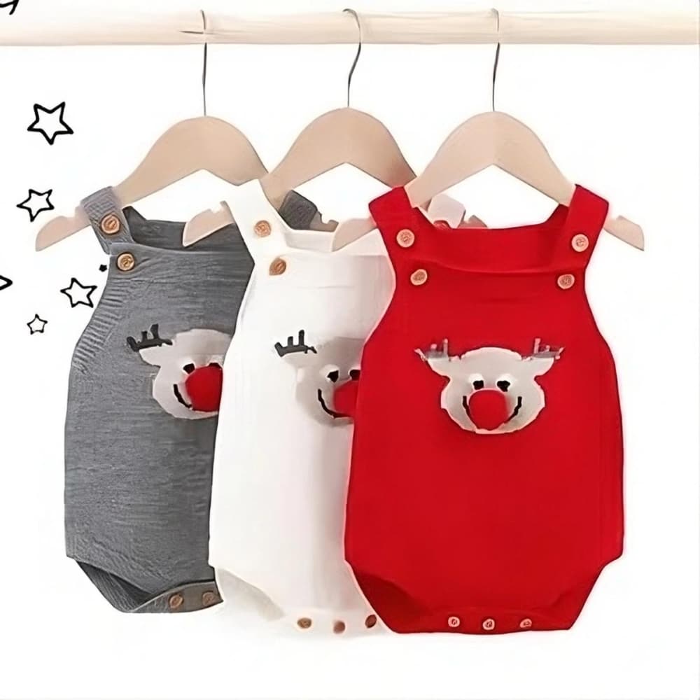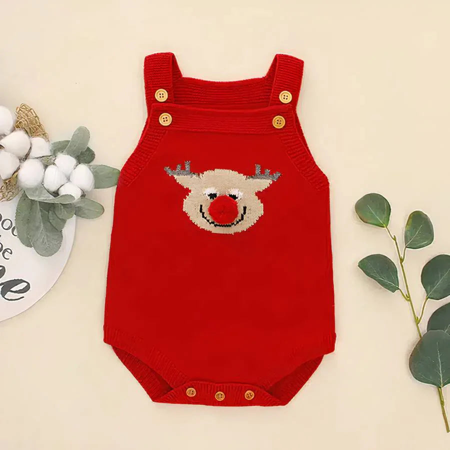 Découvrez notre ravissante Barboteuse en tricot pour bébé garçon et fille de la Collection spéciale de Noël. Ce charmant vêtement, orné d'un joyeux renne de Noël avec son nez rouge iconique, est parfait pour les garçons et les filles.