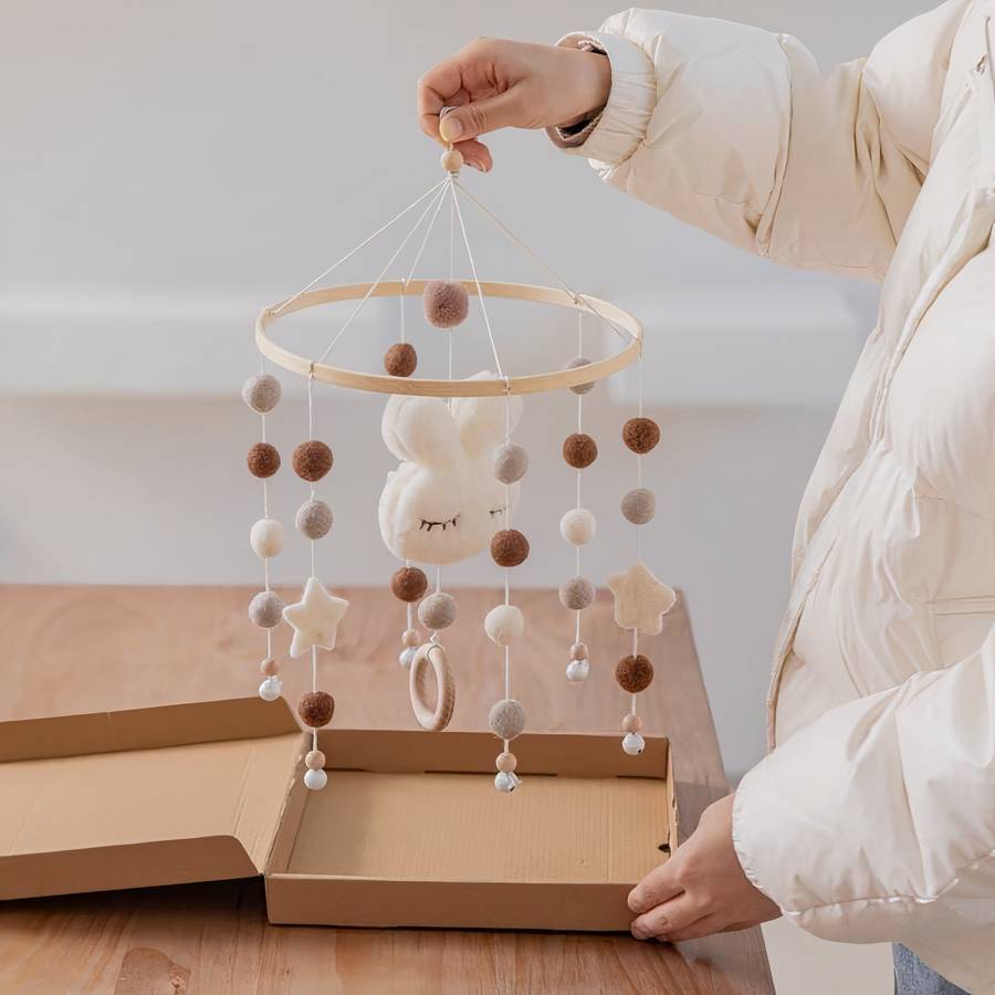 Offrez à votre bébé des moments de bonheur infinis avec notre charmant Hochet de lit en coton pour bébé! Confectionné avec amour à partir de bois et de coton de haute qualité, ce hochet est conçu pour stimuler les sens de votre enfant tout en ajoutant une touche joyeuse à la chambre.