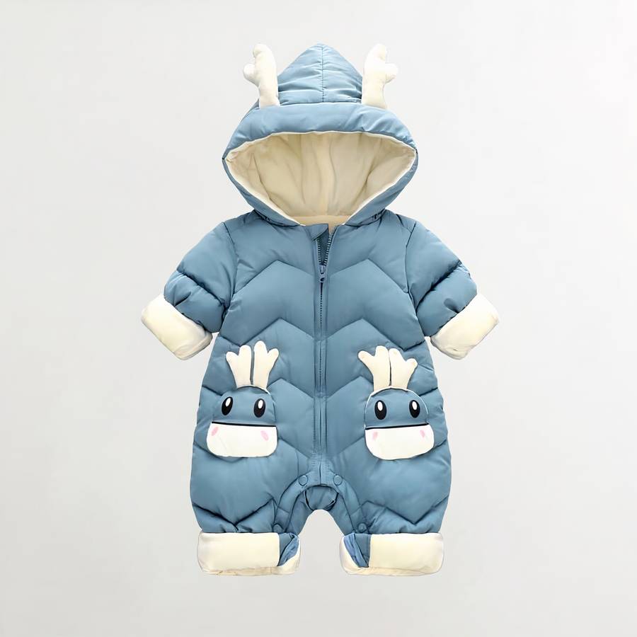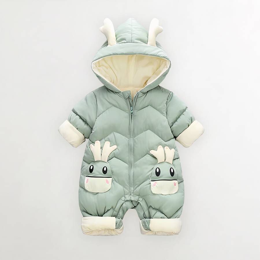 Gardez votre petit bien au chaud cet hiver avec nos adorables Salopettes pour bébé d’hiver à capuche en forme de cerf ! Conçues pour les bébés jusqu'à 24 mois, ces salopettes combinent chaleur et confort grâce à leur fermeture éclair frontale pratique qui facilite l'habillage.