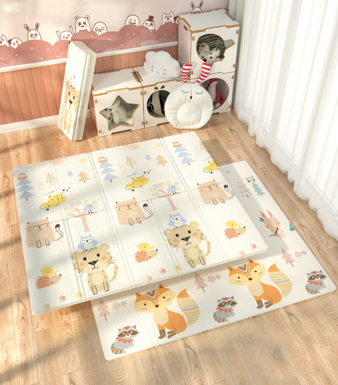 • 🛏️ Espace de jeu confortable : Fabriqué en mousse EVA douce, le tapis est délicat sur la peau de votre bébé et offre une aire de jeu rembourrée.