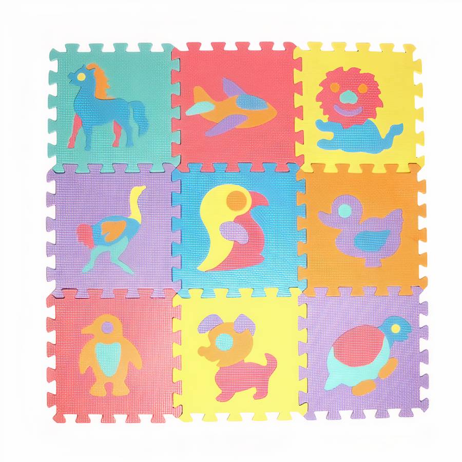 Composé de dix pièces en mousse qui s'emboîtent, avec des couleurs vives et des motifs d'animaux amusants, ce tapis attire l'attention des plus petits tout en offrant une surface sécurisée et confortable pour jouer, ramper ou se reposer.